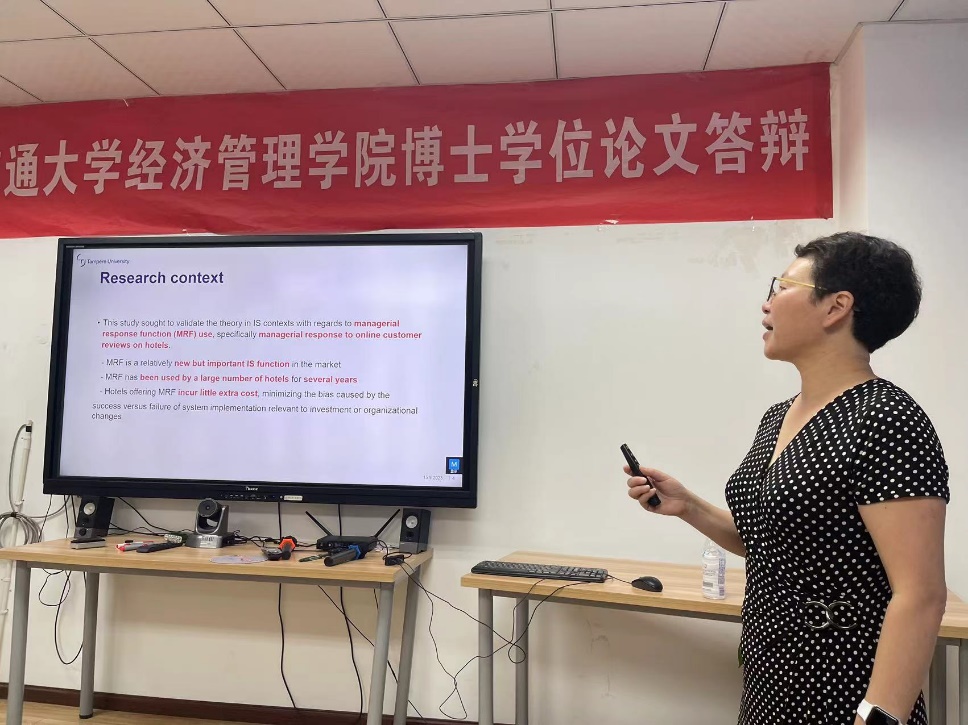 首先,黎教授引入了该论文的研究问题以及两大理论背景,最后提出了论文的研究内容:在IS(Information System)背景下管理回复功能(MRF)的使用,特别是对酒店在线客户评论的管理反应的研究。随后,黎教授重点讲解了该论文的实证部分,基于四个研究假设,运用倾向得分匹配技术(PSM)和差异分析法(DID)进行了两个实证研究。最后,黎教授讲解了该论文的理论和实践意义以及研究局限与未来展望。