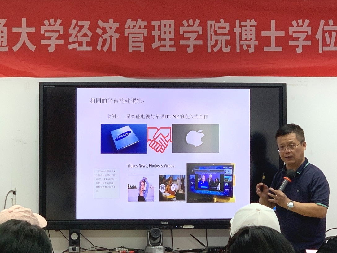 师生进行题为“平台商业模式构建与演化逻辑”学术报告。本次学术活动由学院市场学系蒋玉石教授主持,学院部分老师和研究生参与了此次学术活动。