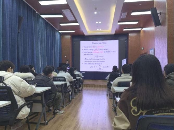 讲分享专注于解决具有时间窗和旅行时间不确定性的车辆路径问题(VRP)的新方法,重点关注在不确定行程时间的时间窗口下确定车队同质化车辆路线的核心议题。章教授就其研究团队在这一问题上的创新和探索进行了介绍。为实现总行程成本不超过预算的前提下最大限度的减少晚到情况,其团队优化了一种新的性能评估指标,即广义风险指数(GRI)。