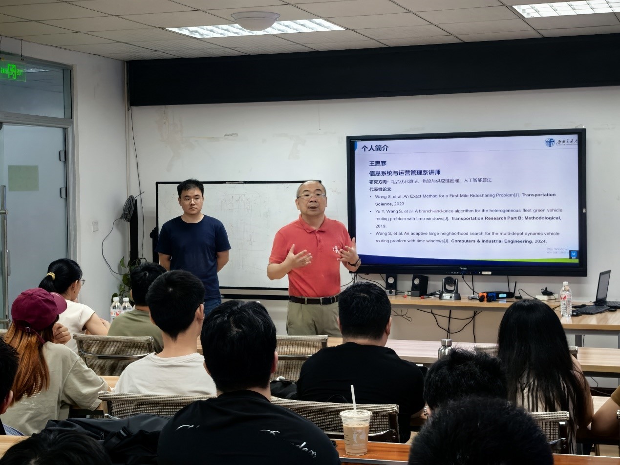 信息系统与运营管理系的助理教授王思寒博士,围绕“几类车辆路径问题的精确算法”这一主题展开,吸引了众多师生到场聆听,讲座由信息系统与运营管理系系主任官振中教授主持。