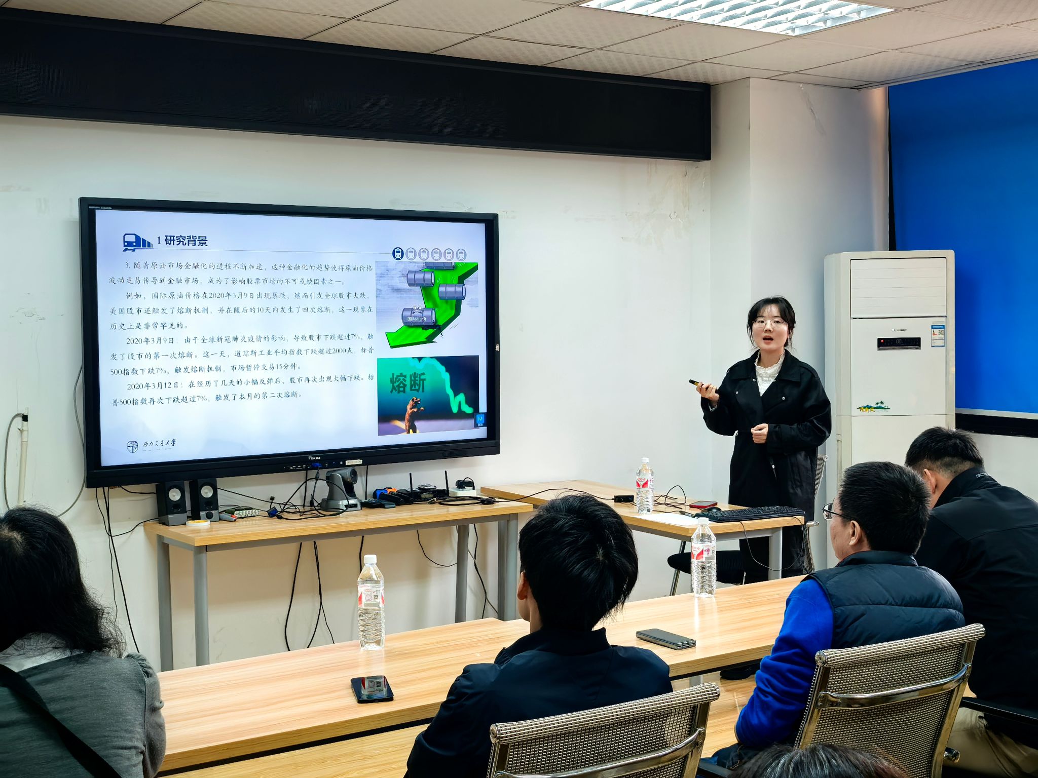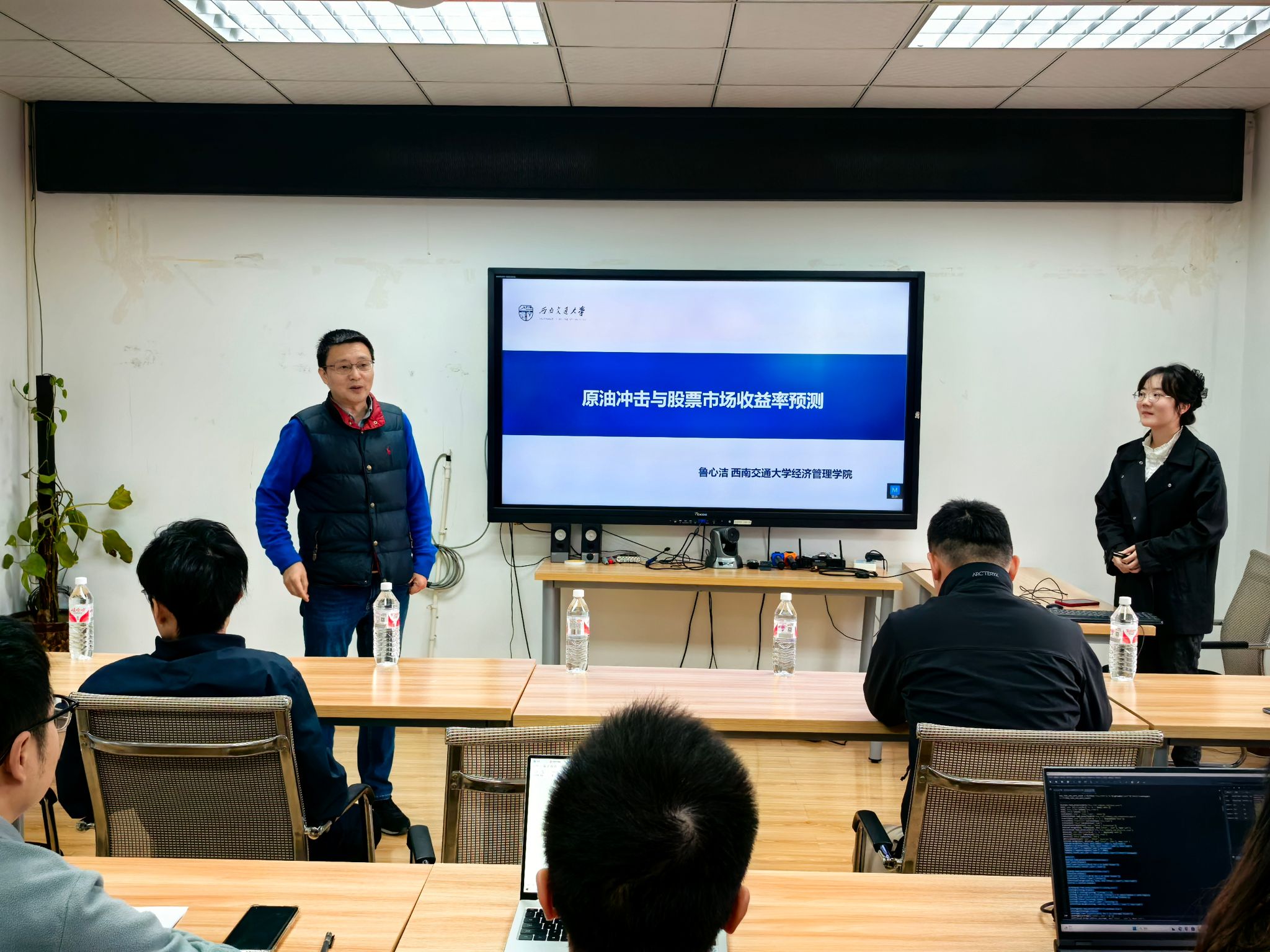 金融与财务学系的助理教授鲁心洁博士,围绕“原油冲击与股票市场收益率预测”这一主题展开,学院部分师生到场聆听,讲座由金融与财务学系主任董大勇教授主持。