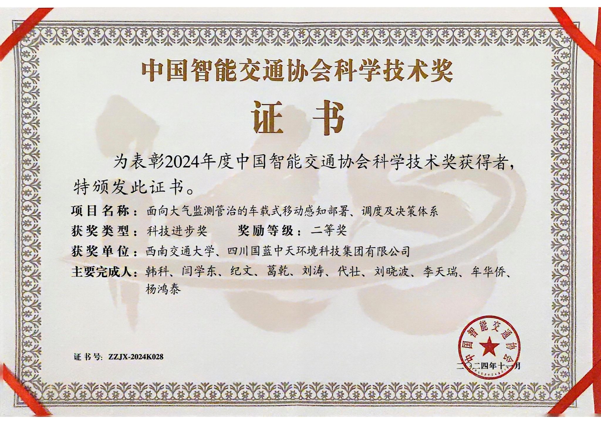 韩科教授牵头完成的《面向大气监测管治的车载式移动感知部署、调度及决策体系》荣获科技进步二等奖(完成单位:包子漫画