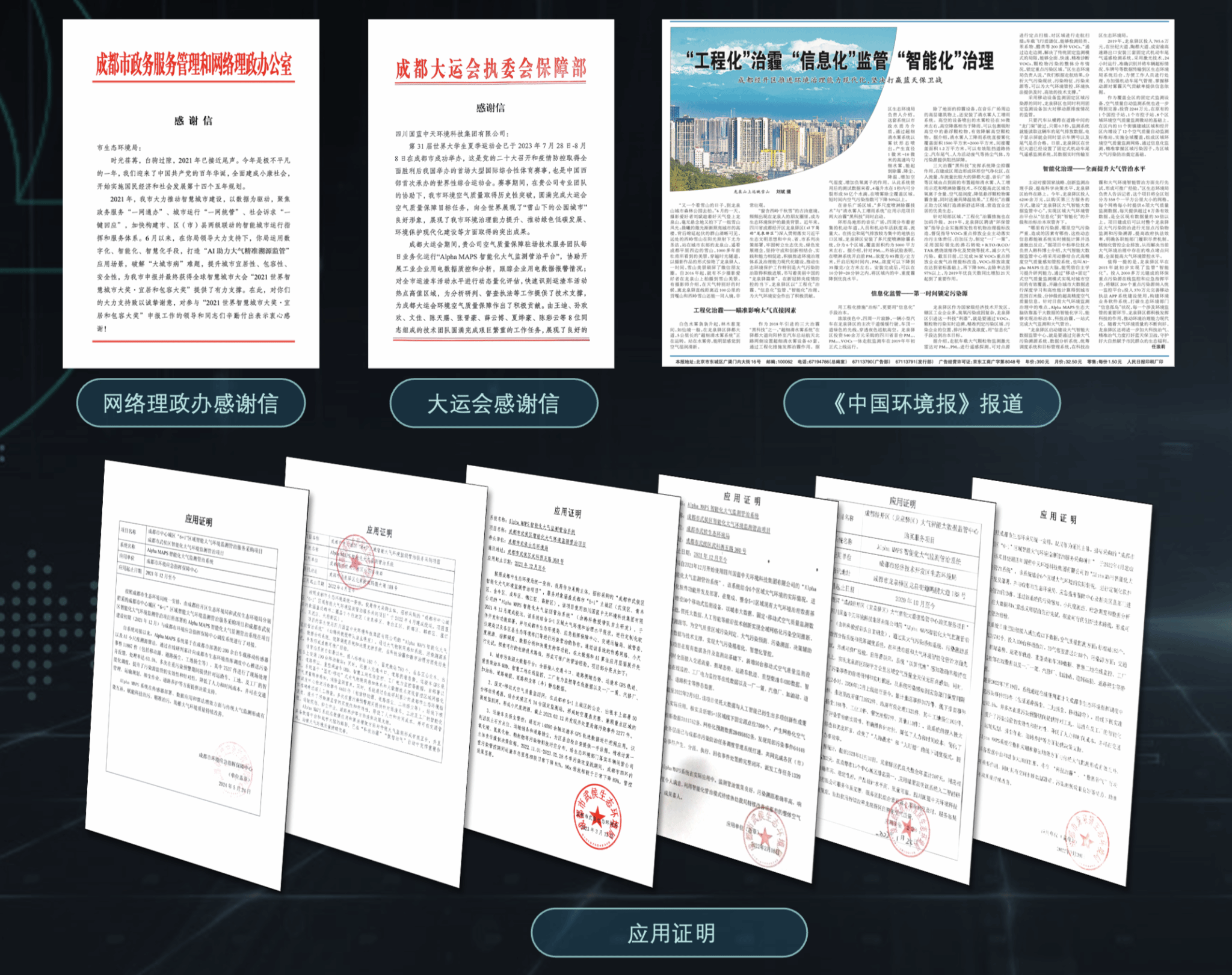(5)获全球智慧城市大会“2021世界智慧城市大奖·宜居和包容大奖”,入选2023年度数字中国优秀实践案例、第五届“数字中国”数字生态优秀应用案例、中国环境报“2022年度智慧环保十佳创新案例”等。