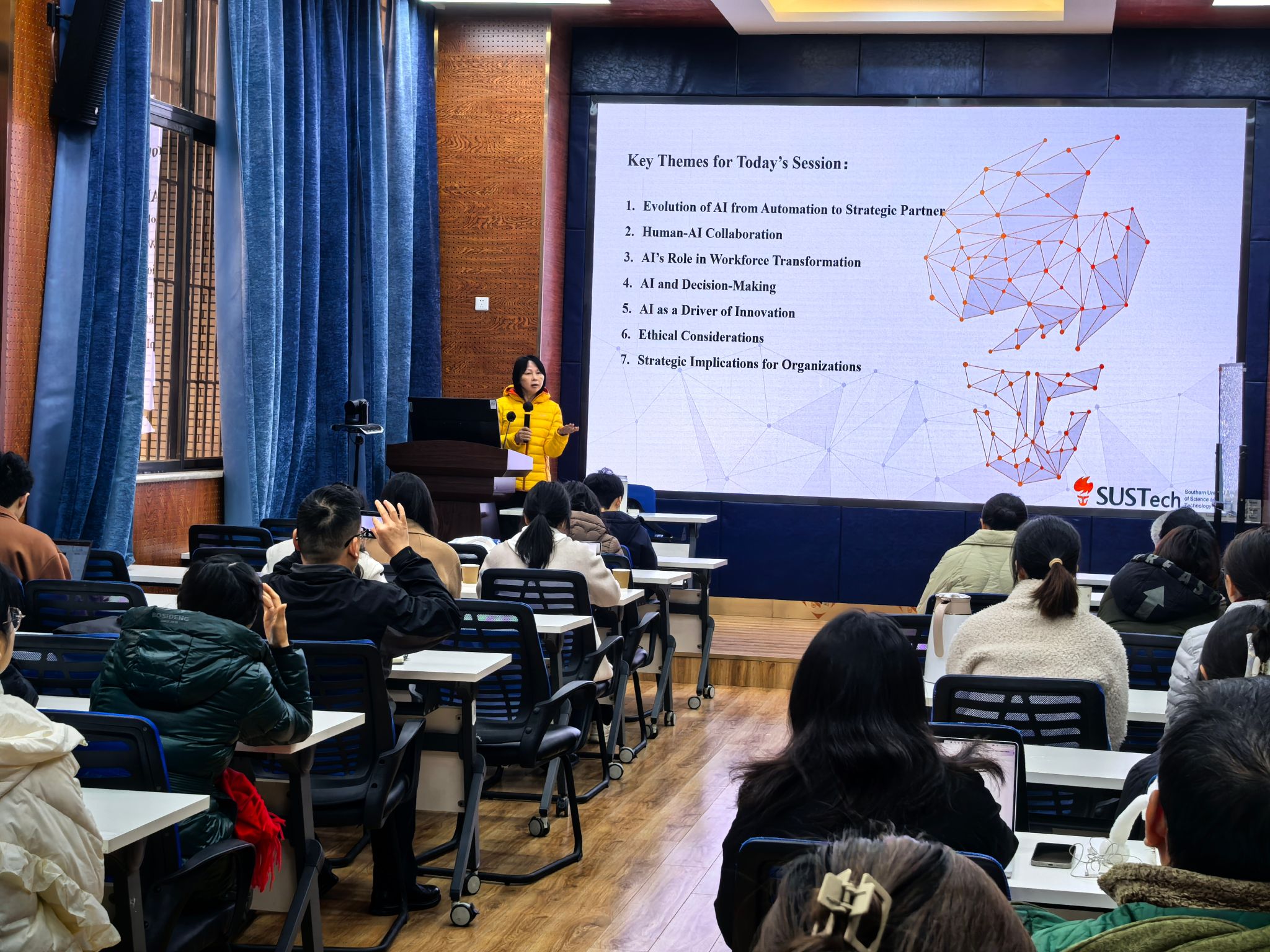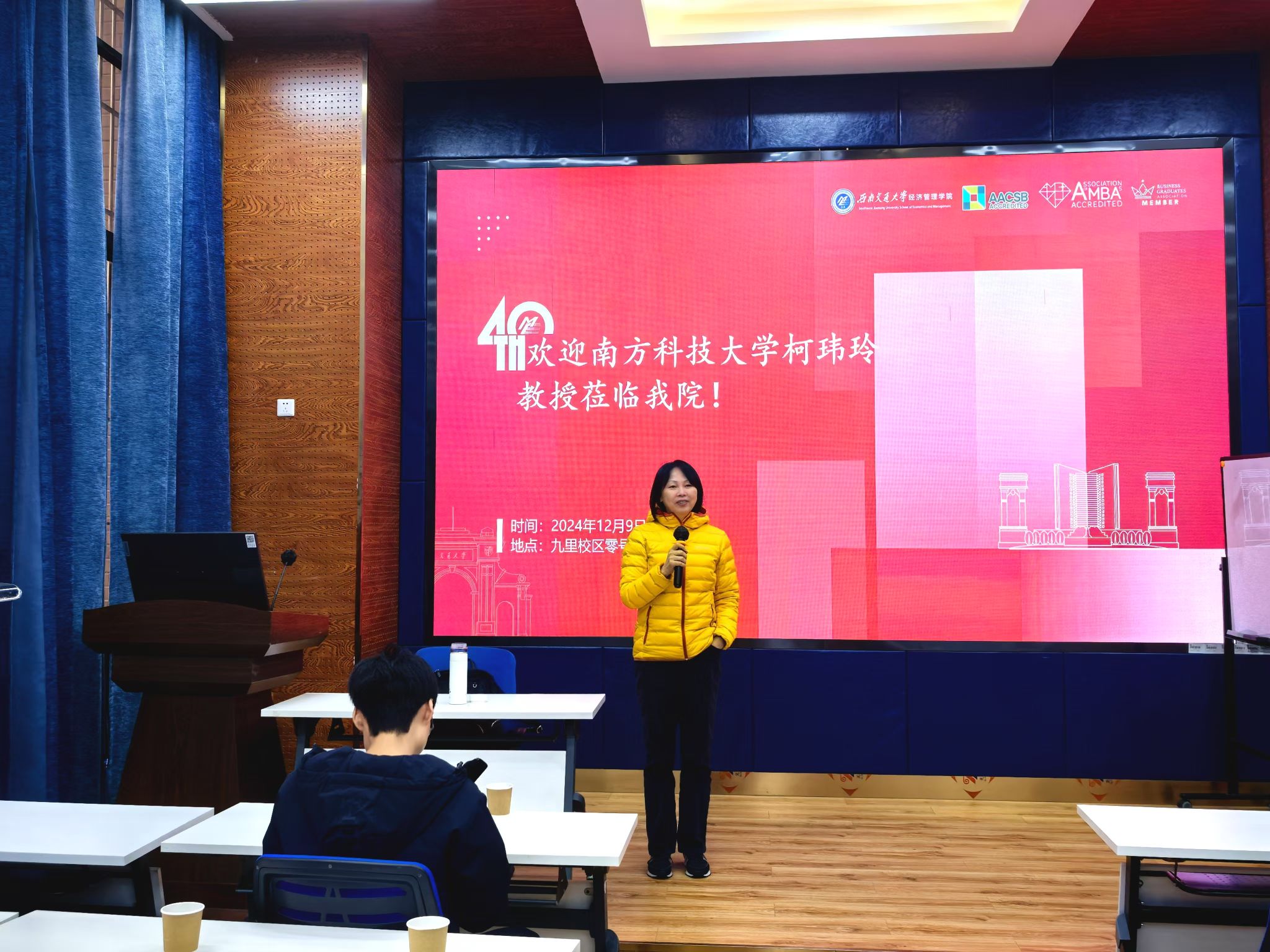 师生带来题为“超越自动化:人工智能在塑造未来组织中的战略角色”的学术讲座。学院副院长马锋、部分教师以及研究生30余人参加了本次学术交流活动。副院长马锋在场学院师生介绍了柯玮玲教授的学术背景与成就,并对柯玮玲教授表示热烈的欢迎与诚挚的感谢。