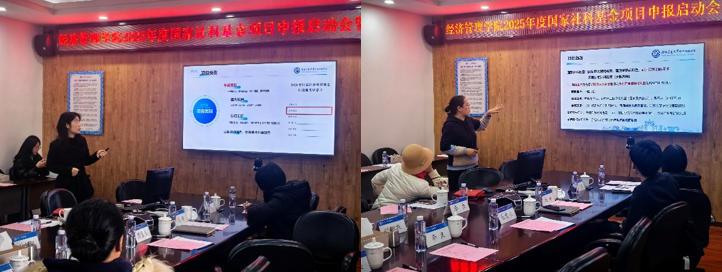 在零号楼0607会议室召开了2025年度国家社科基金项目申报启动会暨经验分享交流会。学院特邀文科学部执行主任张雪永进行申报动员,市场学系主任副教授范春梅、创新创业与管理学系副教授刘玉焕分享了申报社科基金项目的经验。会议由包子漫画