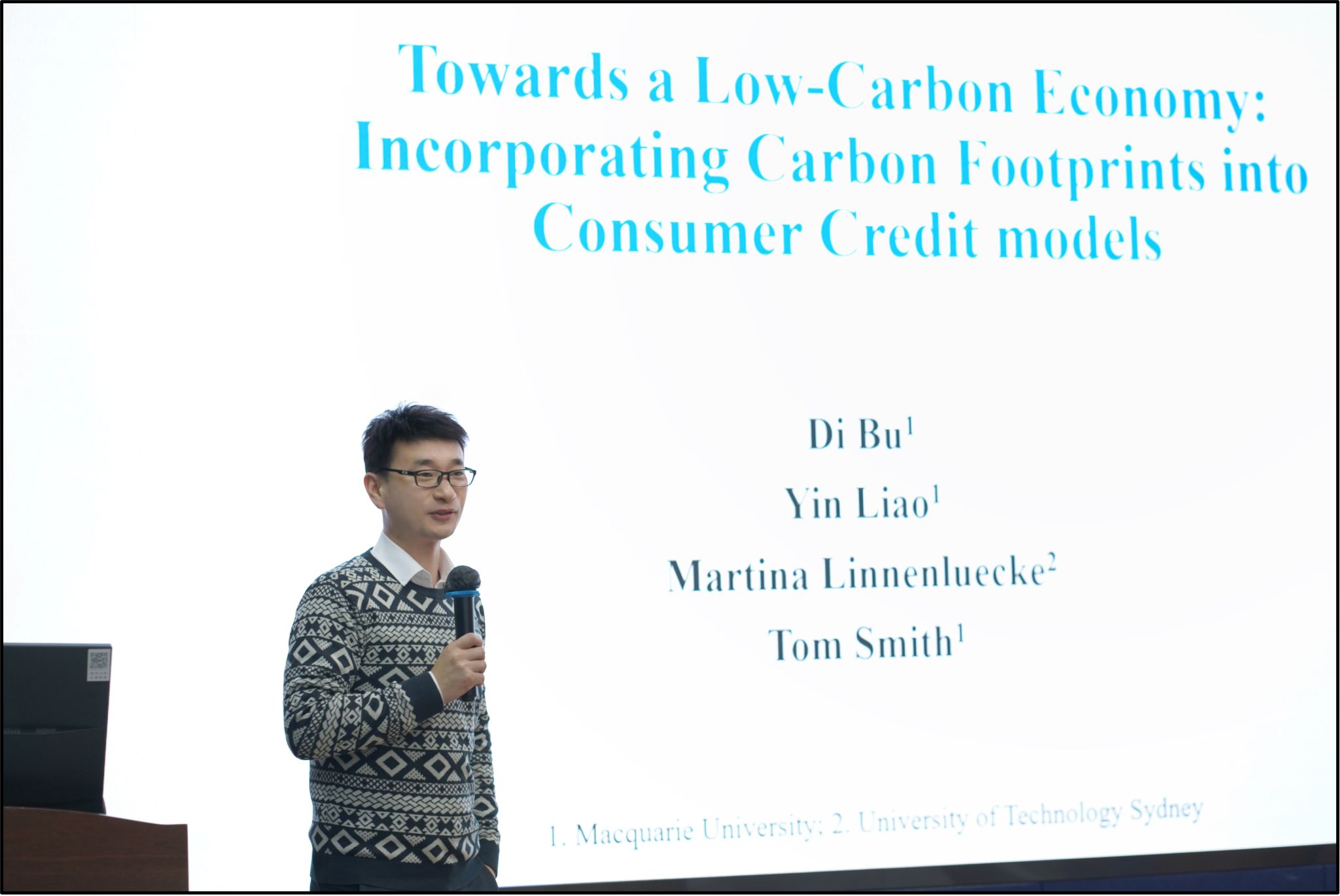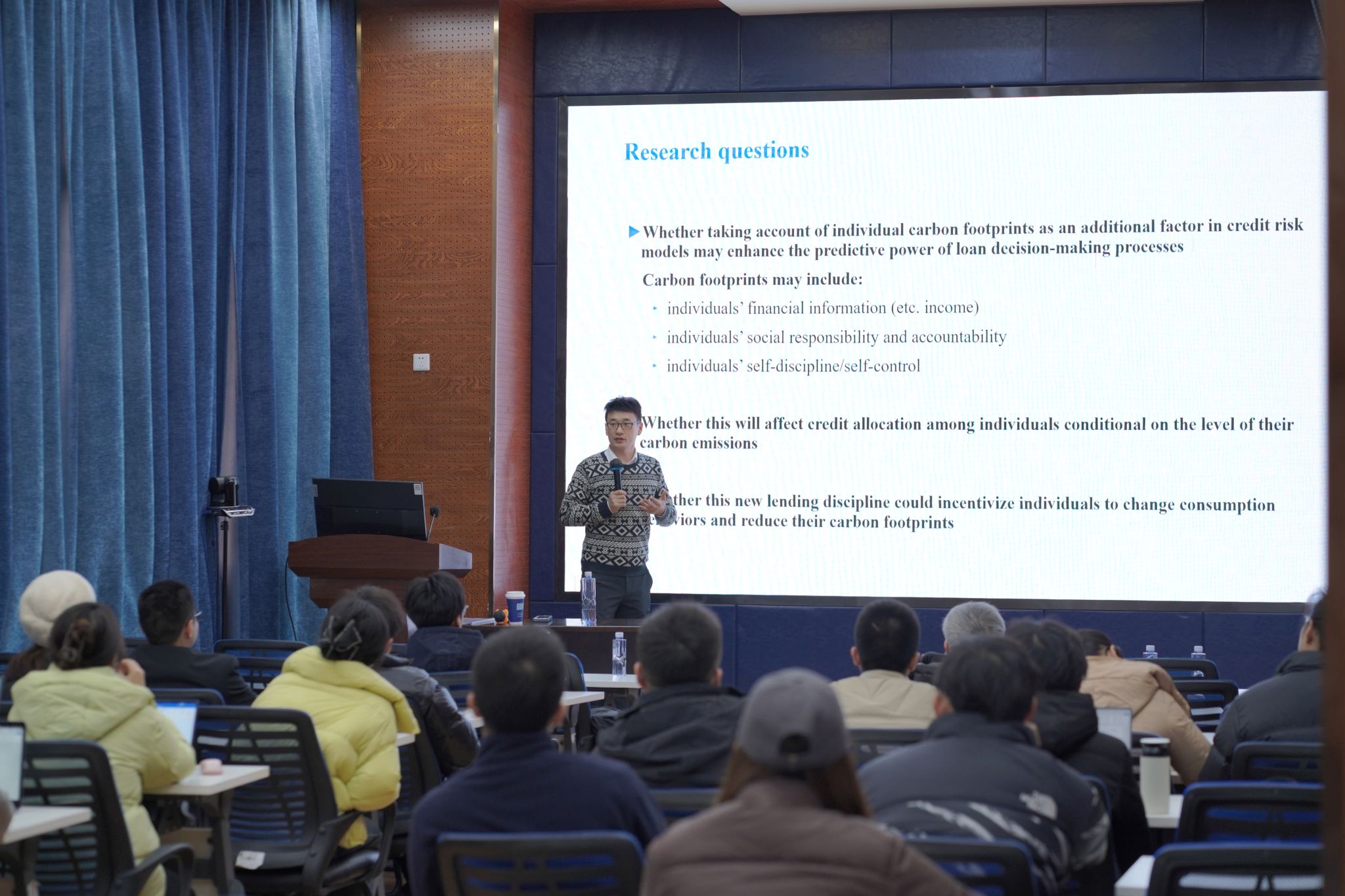 师生作题为“Towards a Low-Carbon Economu:Incorporating Carbon Footprints into Consumer Credit models”的学术讲座。本次学术活动由学院副院长马锋主持,学院学系教师及研究生30余人参加此次学术活动。