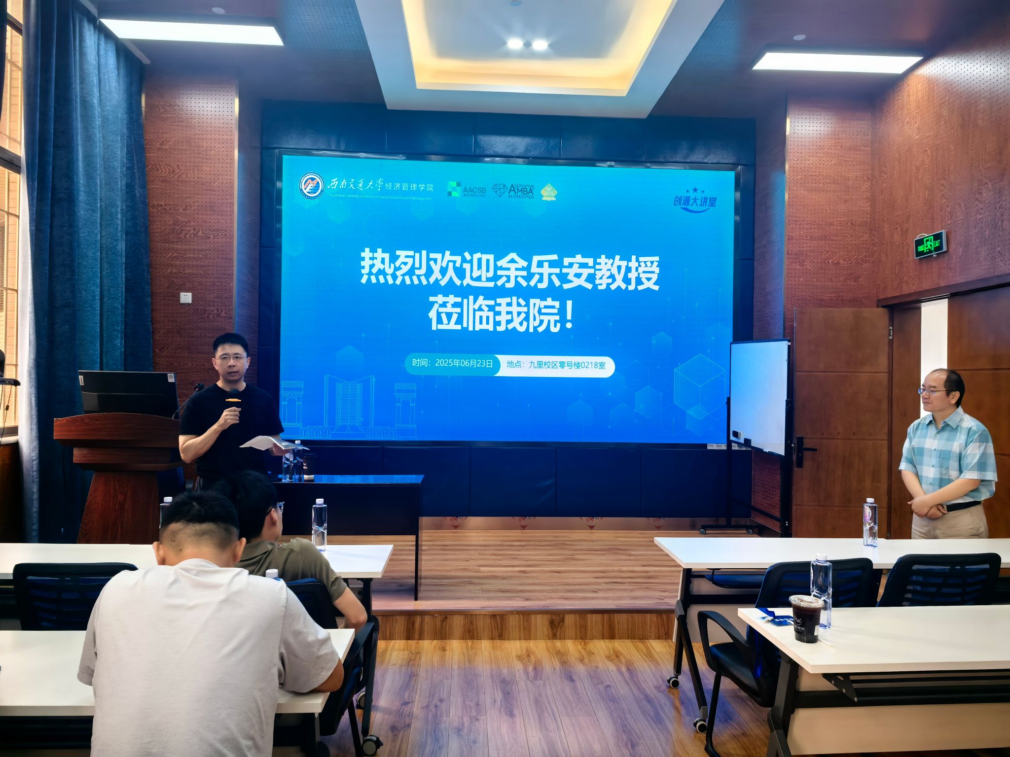在互动环节,现场师生踊跃提问,围绕计算成本、大模型研究现状与期刊发表、金融与社会信用建模等问题展开了深入交流。余乐安教授耐心细致地回应了师生的提问,并进一步分享了其团队在语义增强方面的探索与思考,介绍了具体研究过程中的技术细节与挑战。