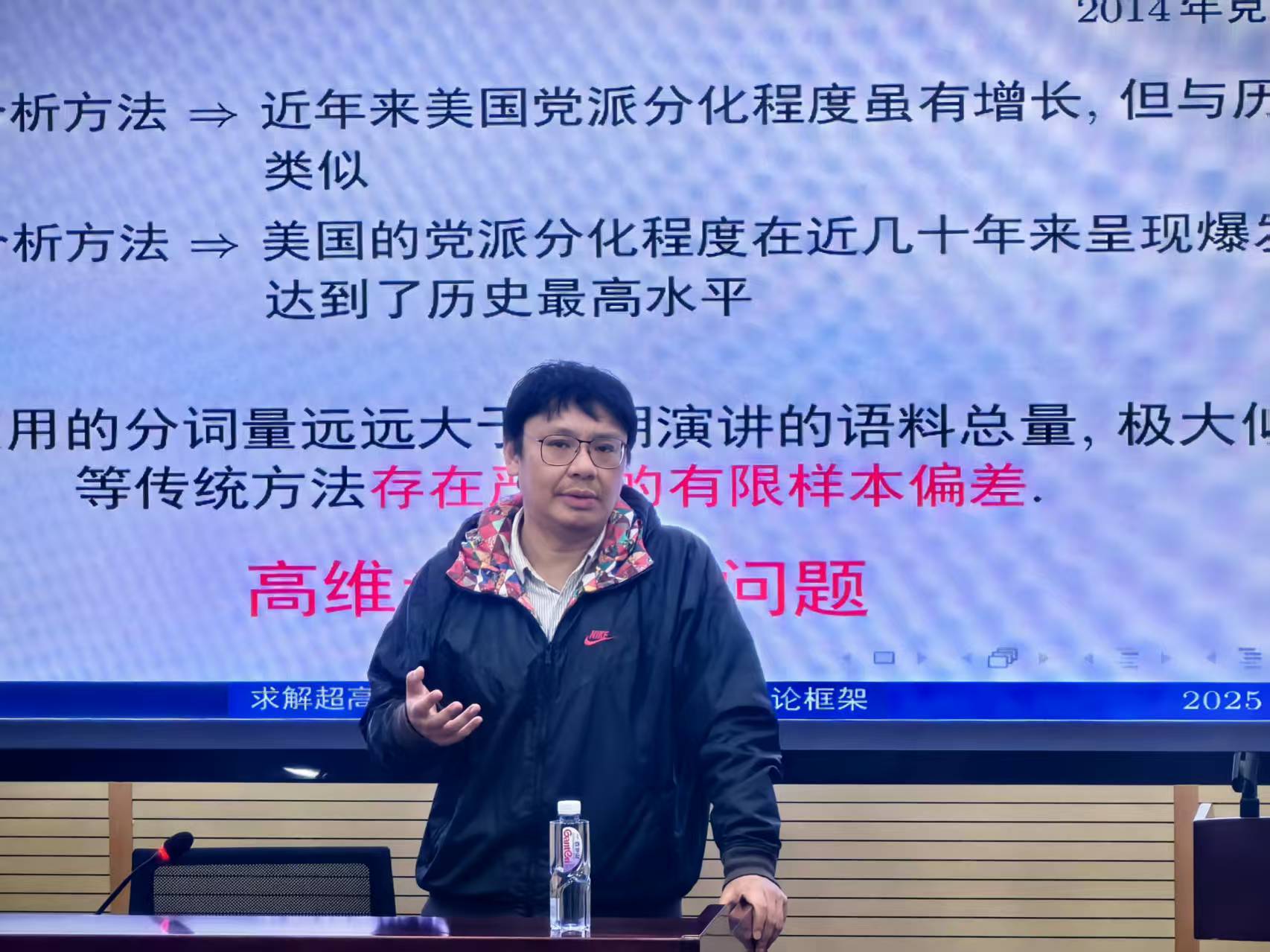 师生作了一场题为“求解超高维计量经济模型的统一方法论框架”的讲座。本次讲座由学院院长韩科教授主持,学院部分教师及研究生共同参与。韩院长在开场致辞中对常晋源教授的学术成就进行了简要介绍,并代表学院对其莅临表示热烈欢迎与诚挚感谢。