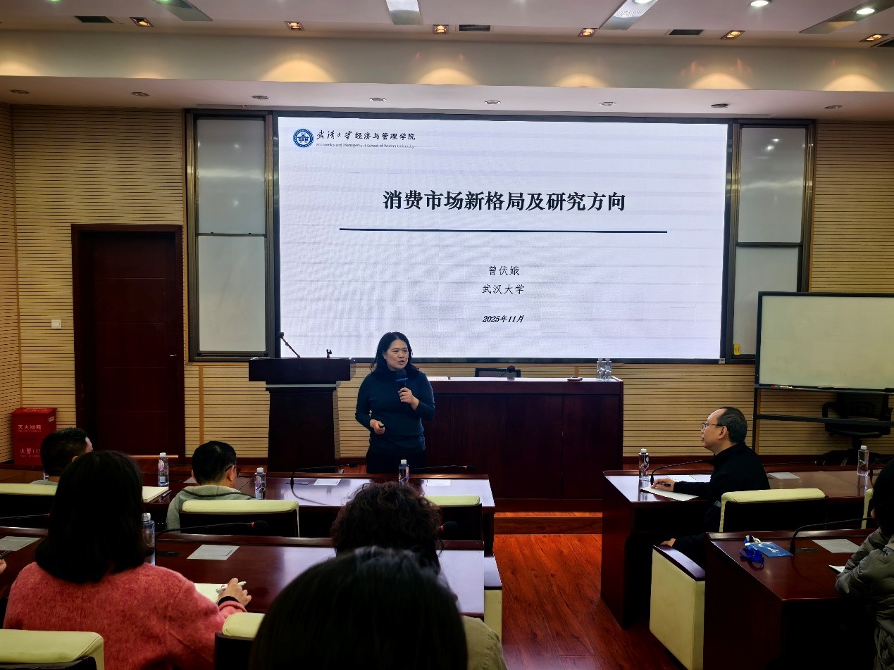 讲座伊始,副院长李良简要介绍了曾伏娥教授的学术履历与研究成果,并代表学院对曾教授的到来致以热烈欢迎。报告环节,曾伏娥教授围绕经济下行与人口增长放缓这一当下备受关注的社会经济现象,展开了深度且系统的剖析。她深入指出,在经济形势的波动、社会结构的演变以及技术创新的不断推动下,中国消费市场正经历着一场前所未有的结构性变革,正在重塑消费市场的既有格局。