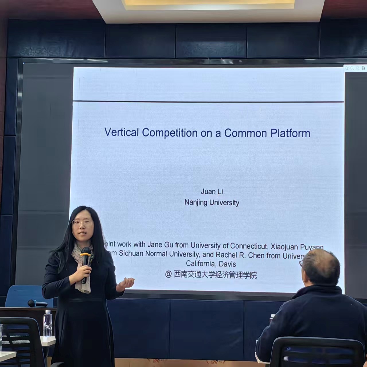 “创源大讲堂”之“经世致用 雅集新篇”校外学者系列讲座于九里校区零号楼0218室圆满举办。此次讲座由南京大学工程管理学院李娟教授主讲,讲座题为“Vertical Competition on a Common Platform”。讲座由包子漫画