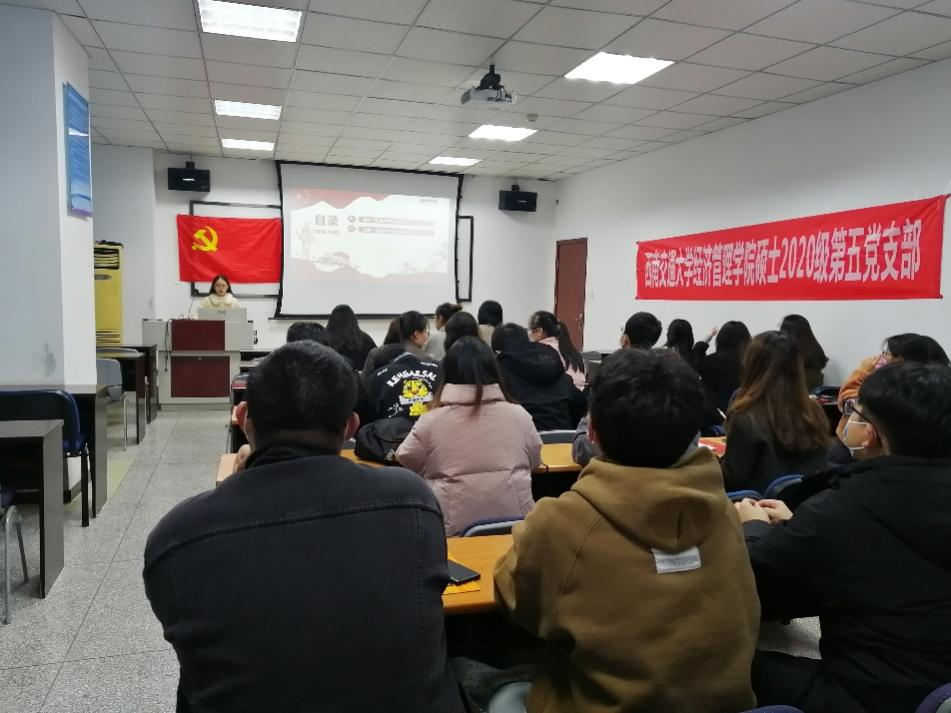 硕士2020级第五党支部于0号教学楼0317开展十九届六中全会学习和党员应知应会答题活动,本次会议由支部成员刘柯同志带领全体成员进行学习,出席会议的有支部内党员、预备党员和积极分子。