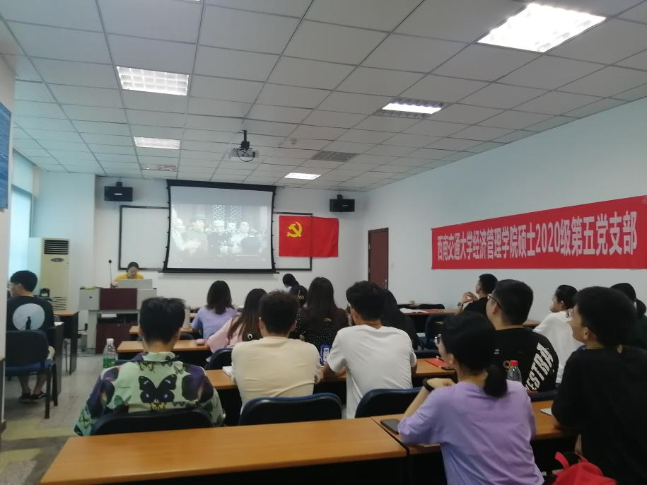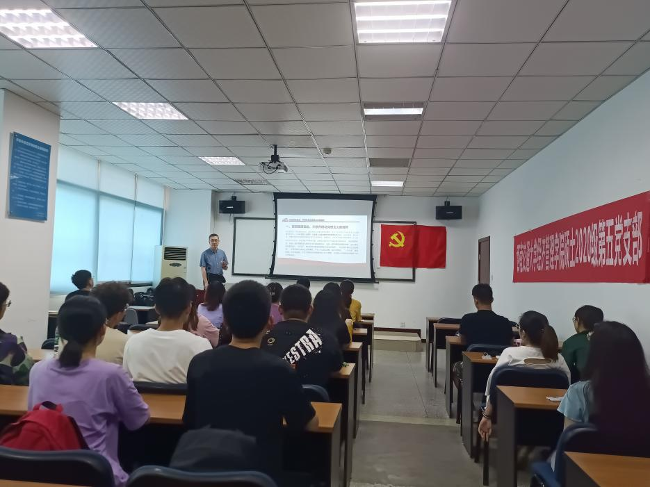 硕士2020级第五党支部开展党史、新中国史专题学习。本次会议由两部分组成:学院党委书记王斌为支部讲授“从百年大党迈向百年强党”主题党课、支部成员何汶昱带领支部成员学习新中国史。出席会议的有学院党委书记王斌及支部内党员,预备党员和积极分子。