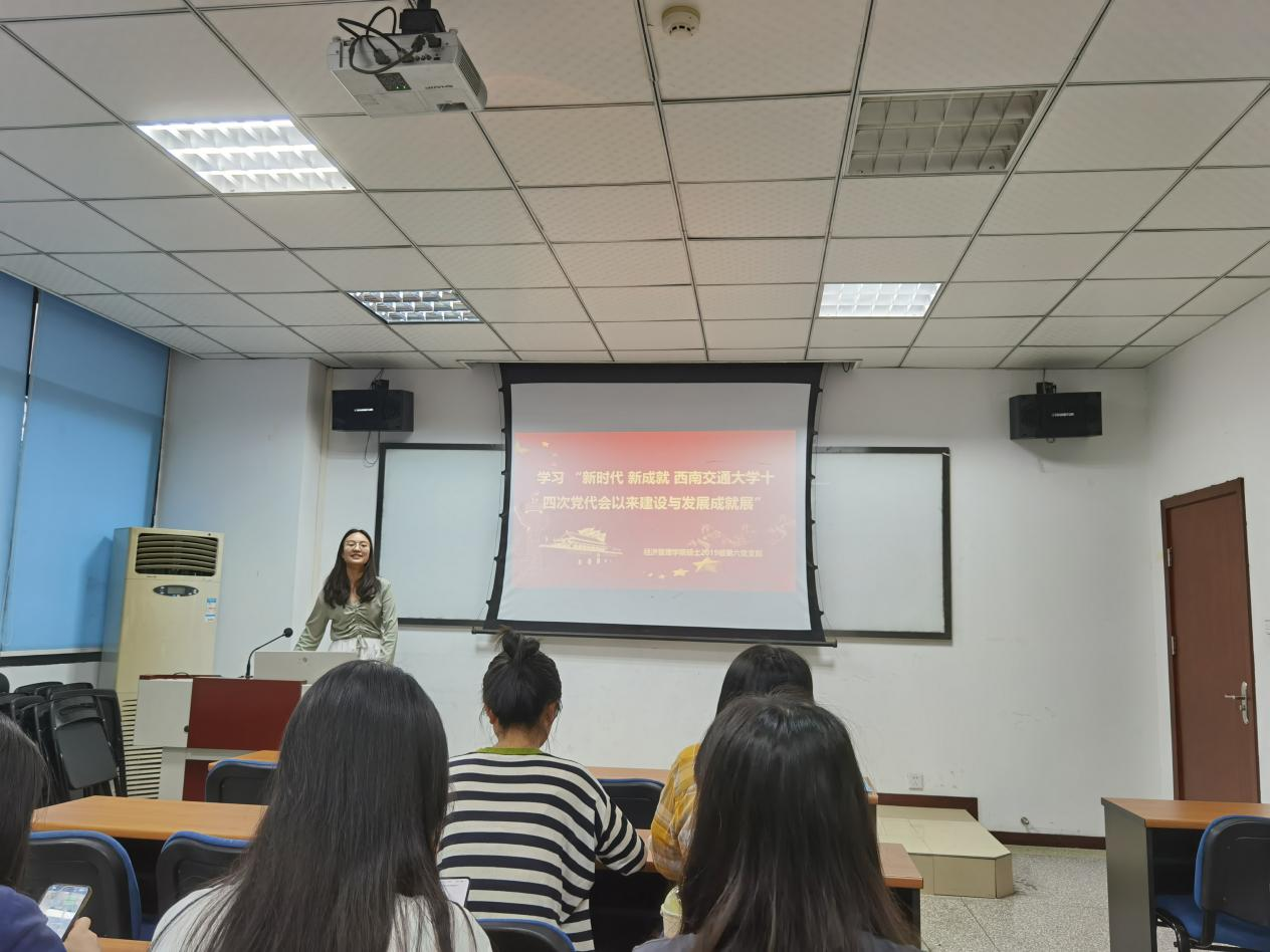 十四次党代会以来建设与发展成就展”的专题活动。参会的人员有支部全体党员同志和入党积极分子,本次活动由沈杭同志主持。