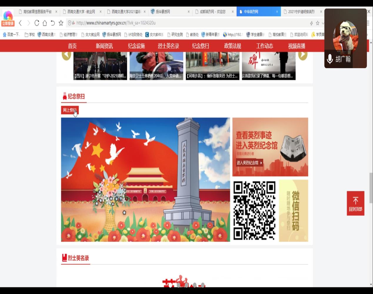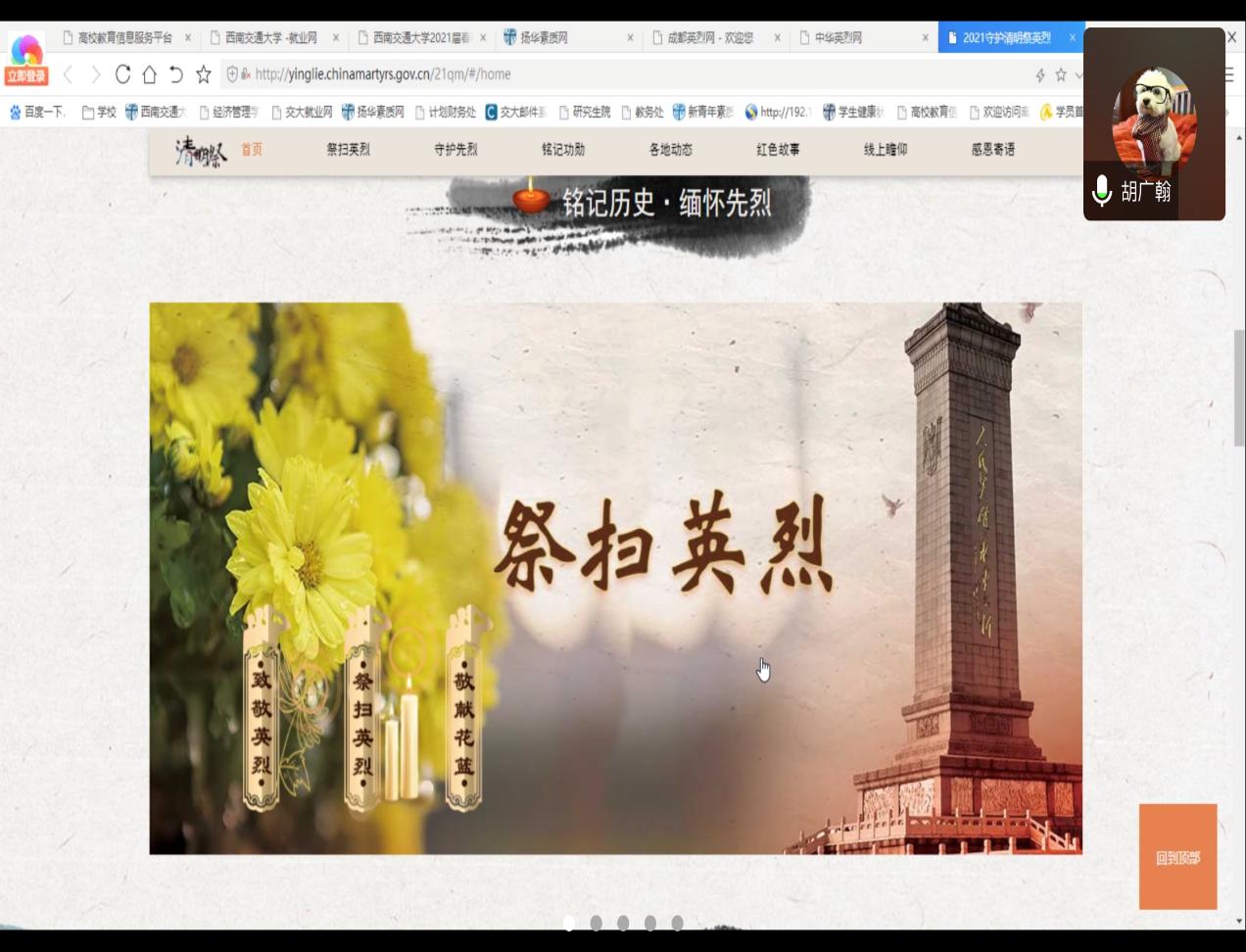 2021年4月1日下午16:00,2016级博士党支部通过腾讯会议召开组织生活会。本次组织生活的核心主题是“清明祭英烈、共筑中华魂”。