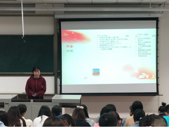 在两会知识学习环节,主讲人通过播放新闻视频引入两会主题,并围绕什么是两会、两会内容、两会精神等给同志们普及了相关知识,学习过程中台上台下积极互动,在愉快的氛围中进行了两会模拟扮演。同志们扮演代表进行两会提案,分别就校园招聘、大学生投资理财以及心理健康检查常态化问题提出了自己的意见,并与其他同志积极互动,取得了良好成效。
