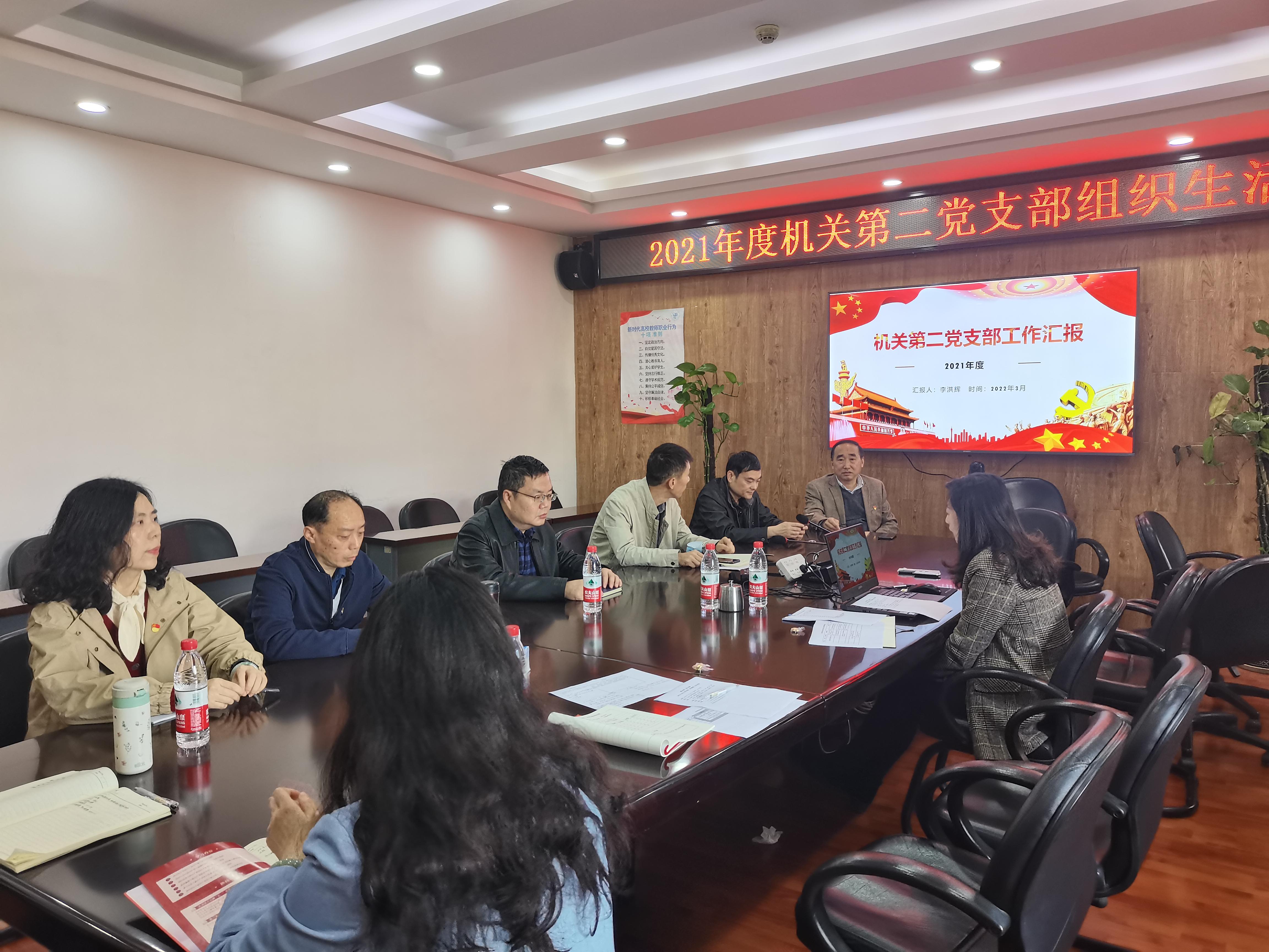 机关第二党支部在九里校区0607会议室,召开2021年度组织生活会,并开展党员民主评议。学院党委委员、副院长周嘉南同志作为党支部联系人列席参加了会议。