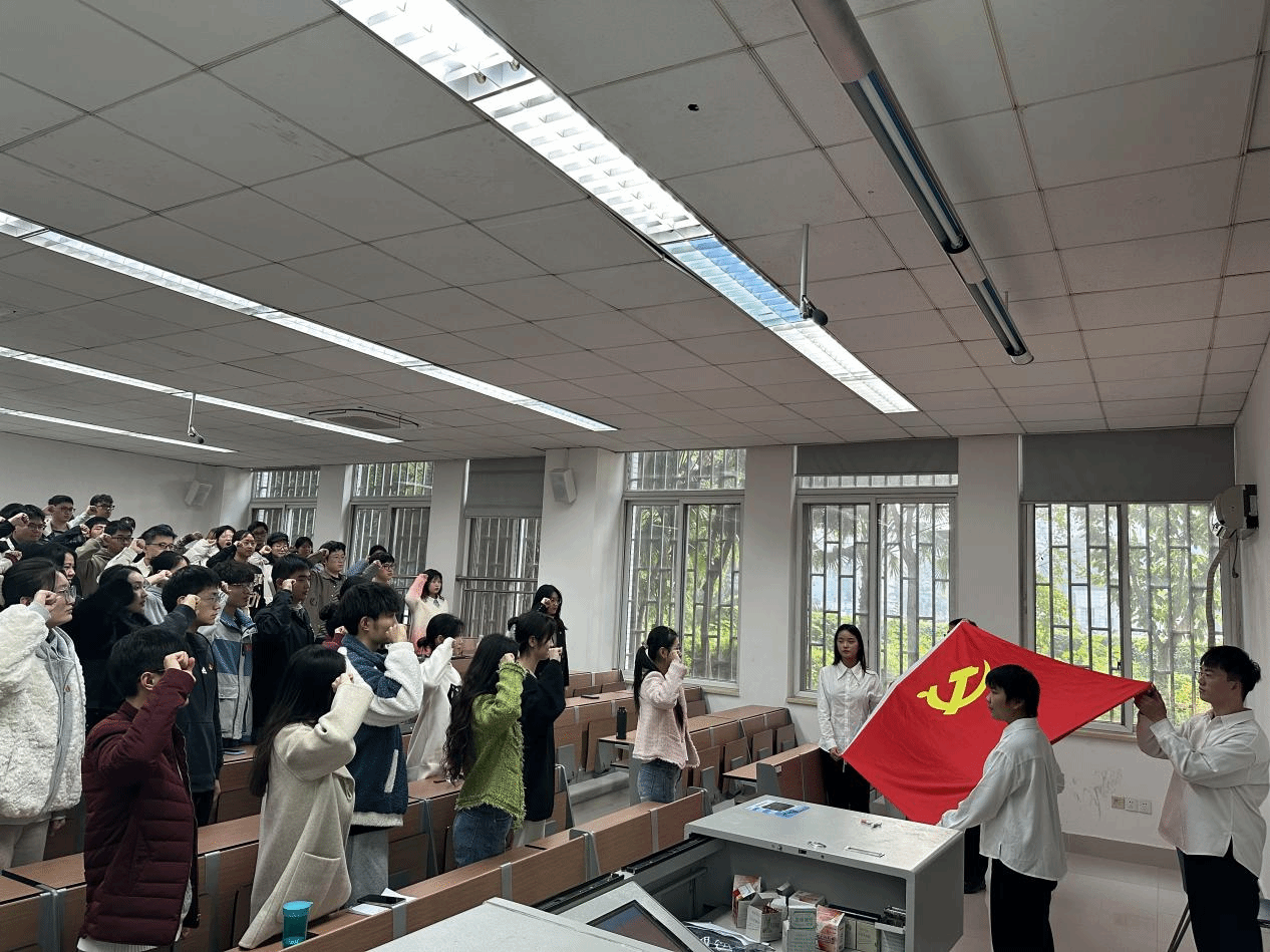 本科党支部的全体师生面向党旗,举起右拳,重温入党誓词。面对鲜红的党旗,全体党员回忆着入党的初心与使命,牢记共产党员的政治任务和历史使命,永葆共产党员的先进性和纯洁性,立志以饱满的热情投身未来的学习和工作中,切实发挥共产党员的先锋模范作用。