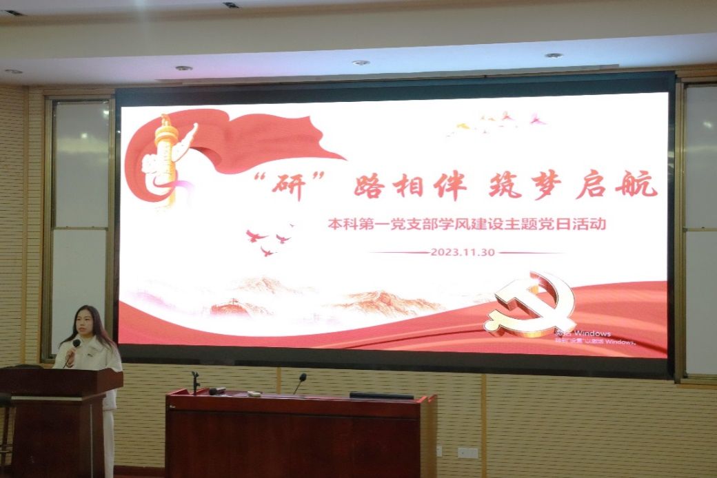 本科第一党支部于九里校区J0202开展了“‘研’路相伴,筑梦启航“学风建设主题党日活动,全体党员、入党积极分子参加,活动由党支部书记薄慧主持。