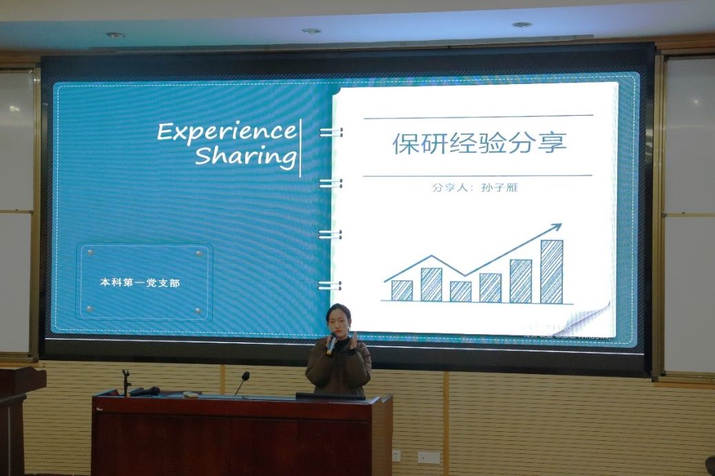 姚小芳同志围绕学业成绩、保研择校、夏令营三个方面向支部成员分享了自己的保研经验。她强调了学业成绩的重要性,学业成绩是通往保研之路的基石,她结合自己的学习情况对自己的学习思路与方法作出了详细的介绍。此外,她还从择校、夏令营申请两个方面分享了自己的保研历程,帮助大家建立起关于保研夏令营的认知,为支部成员提供了宝贵的经验财富。