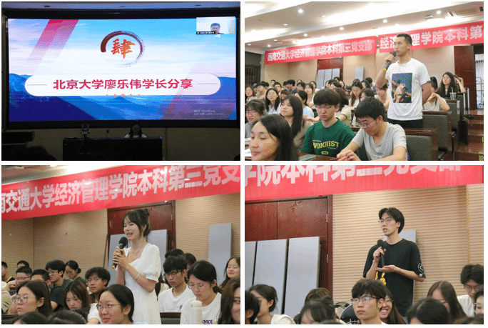 第四项议程是北京大学光华管理学院23级博士生廖乐伟分享了自己关于大学生活安排等内容的看法和建议。在分享完后进行了活动的第五个议程,同学们以“智启未来”为讨论主题,全体成员就如何规划好大学生活、如何更好地适应当下科技迅速的发展等问题展开了激烈的讨论和交流。