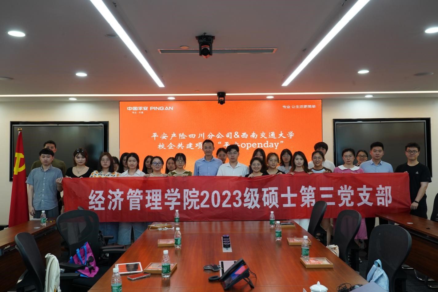 陈海波老师带队2023级硕士第三党支部走进中国平安产险四川分公司开展“学研融实践,智启未来程”主题活动,深入探索保险行业的数字化前沿,与企业高管及优秀校友共同探讨行业发展新趋势。