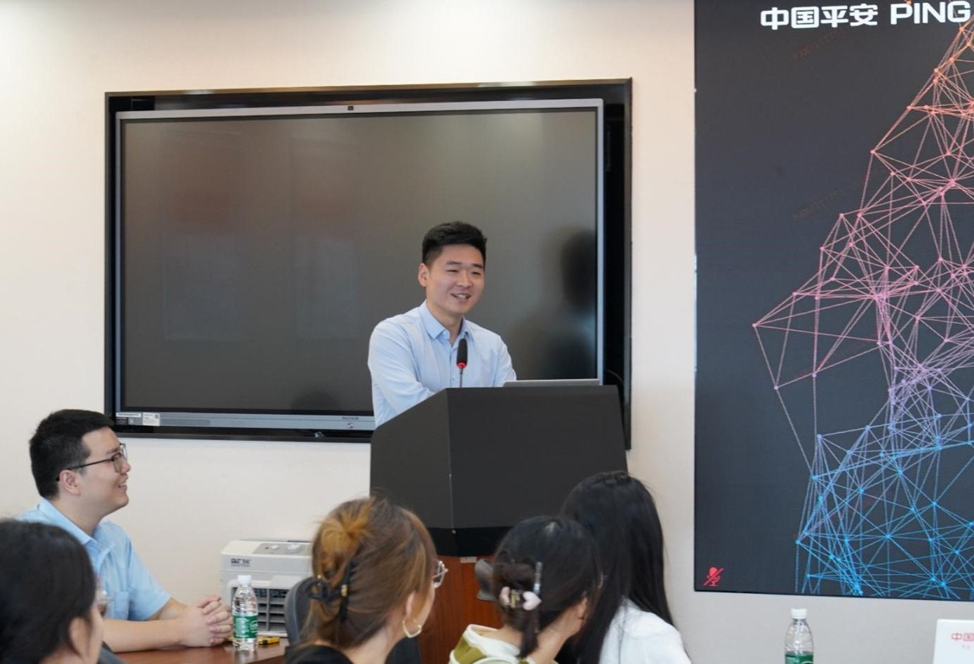 的同学们深入参观了中国平安产险四川分公司的资源中心。依次走访了人事行政部、财务部、法务部、企划部等。特别在产品部门,同学们详细了解了车险、团财和农险等产品的特性与市场定位,对保险行业的业务范畴有了更直观的认识。整个参观过程不仅让同学们大开眼界,也为他们未来的职业发展提供了宝贵的实践经验。同时历届管培生也同大家进行了热烈的讨论与交流,交大师兄现身说法,分享自己在中国平安产险四川分公司的成长经历和工作心得。不仅让同学们感受到了公司的良好氛围和职业发展前景,也为大家提供了宝贵的职业建议。