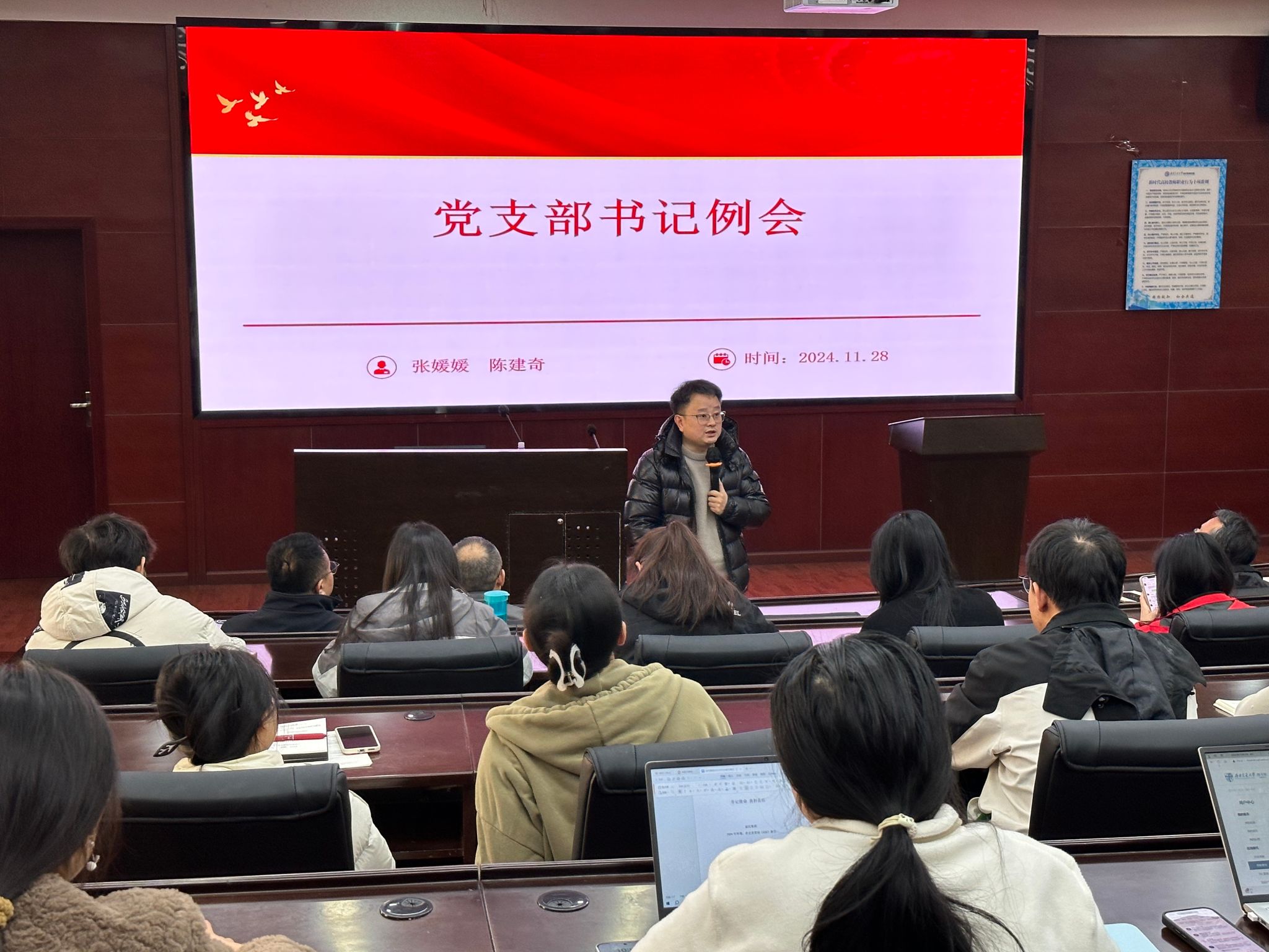 2024年11月28日,学院党委在0228教室召开党支部书记工作例会,学院党委书记郭强、副书记晏理斌、党委组织员以及师生党支部书记30余人参加了会议。会议由组织员张媛媛主持。会议布置了近期党支部工作,并就主题党日活动的开展、党支部工作的总结、党支部转入转出党员的清理等进行了交流讨论。会议指出,党支部主题党日制度是党的组织生活中重要的一项制度,是党员与党组织之间密切联系的纽带, 各党支部要明确主题党日活动主题,确保每次活动有实质内容、有实际效果。会议同时强调了梳理党支部党员组织关系和党员基本信息的严肃性、重要性,提醒党支部做好年度总结工作。