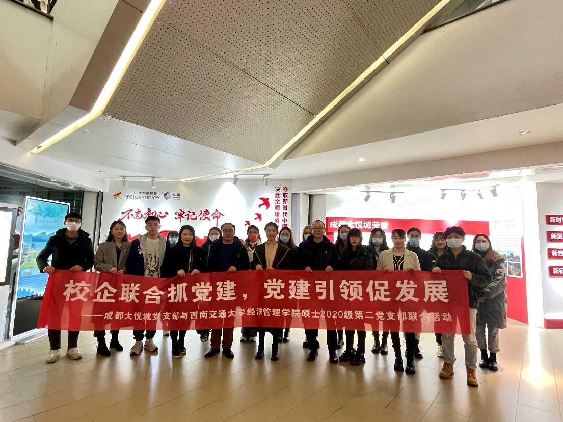 为学习贯彻党的十九届六中全会精神,全面开展党建活动,加强思想政治建设与实践。2021年12月15日下午,包子漫画 经理管理学院硕士2020级第二党支部在党委副书记杨宏毅、副院长李良以及支部书记贾佳老师和研究生辅导员陈海波老师的带领下,至成都大悦城公司开展“校企联合抓党建,党建引领促发展...
