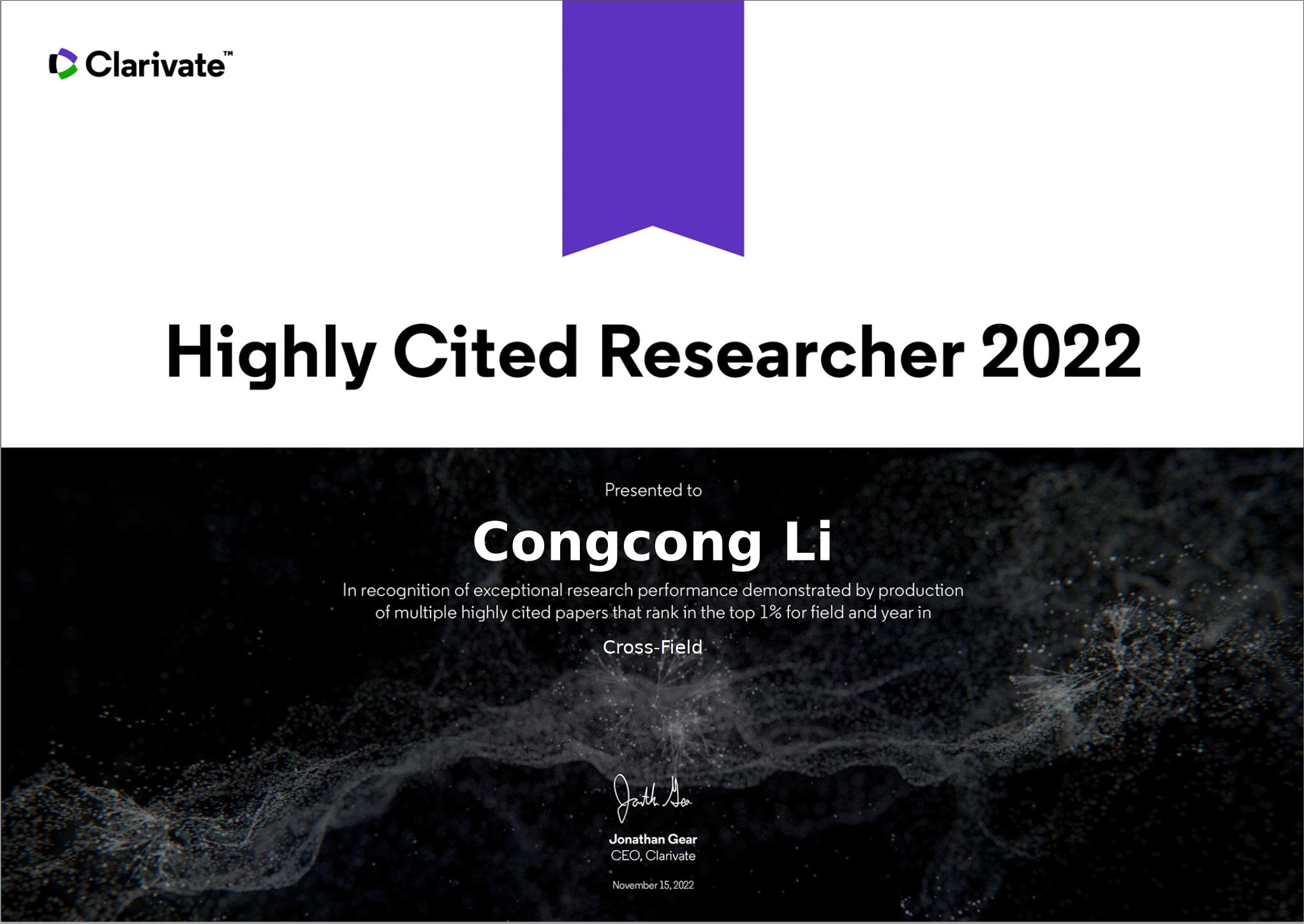 【科研】热烈祝贺包子漫画 李聪聪老师入选2022全球高被引科学家榜单