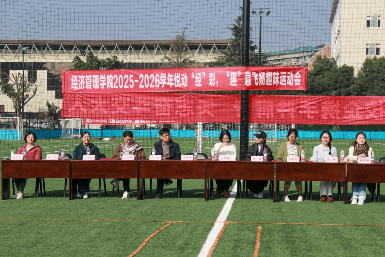 班级联合会承办的“悦动‘经’彩,‘趣’意飞扬”趣味运动会在九里校区田径场举行。